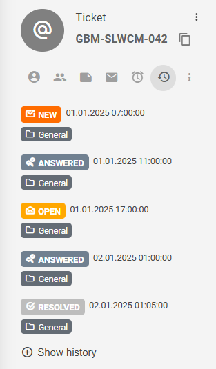 | ルールによるチケット再開 1.1. 07:00:02 | 次回回答 | 1.1. 07:00:02 | 1.1. 13:00:02 | - | 残り6時間 |