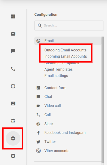 送受信両方に対応する新しいメールアカウントを接続する場合は、まず送信設定から始めることをお勧めします。Configuration(設定) > Email(メール) > Outgoing Email Accounts(送信メールアカウント)に移動し、**「Integrate new mail account」**ボタンをクリックして、このナレッジベースセクションの手順に従ってください。