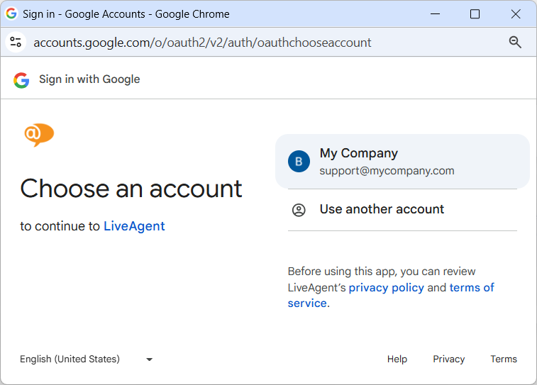 以上で、Googleアカウントの接続が完了し、そのアカウントからメールを送信できるようになります。LiveAgentにメールを受信するためにGoogleアカウントを受信メールアカウントとして接続する方法については、Googleアカウントを受信メールアカウントとして接続するガイドもご参照ください。
