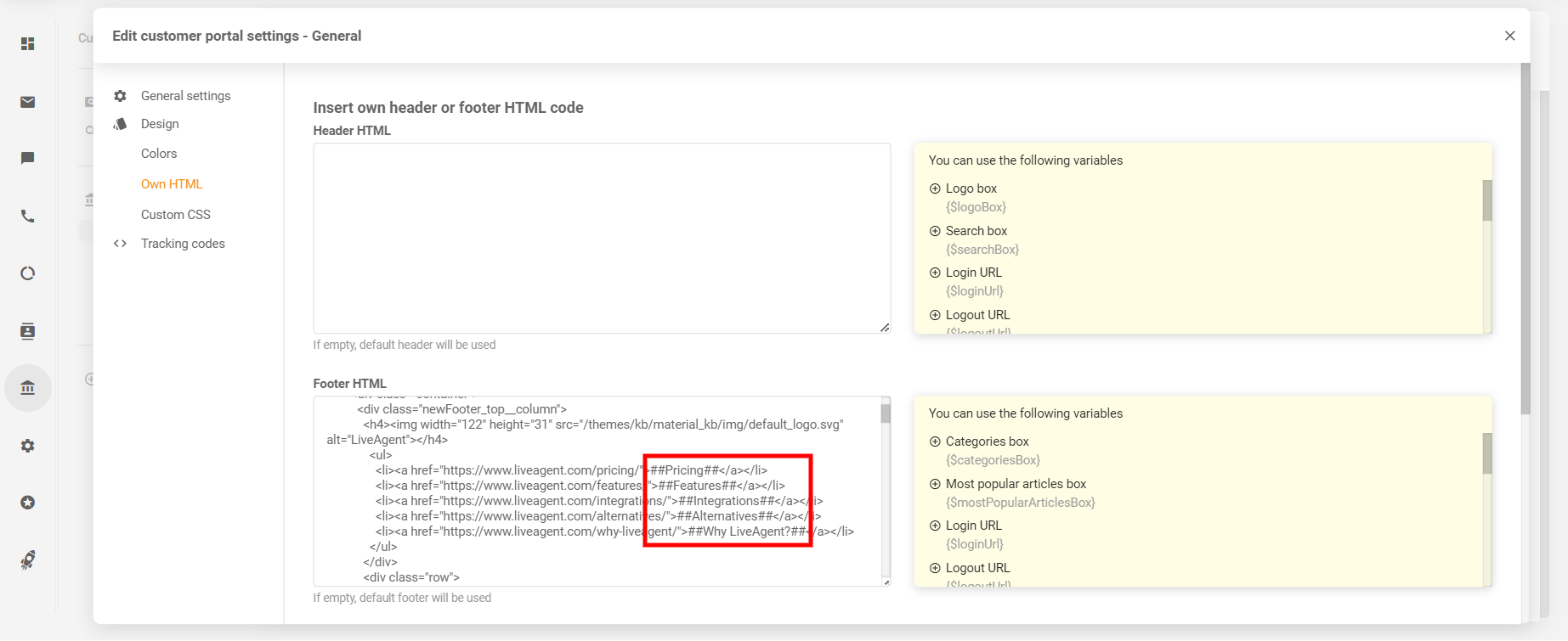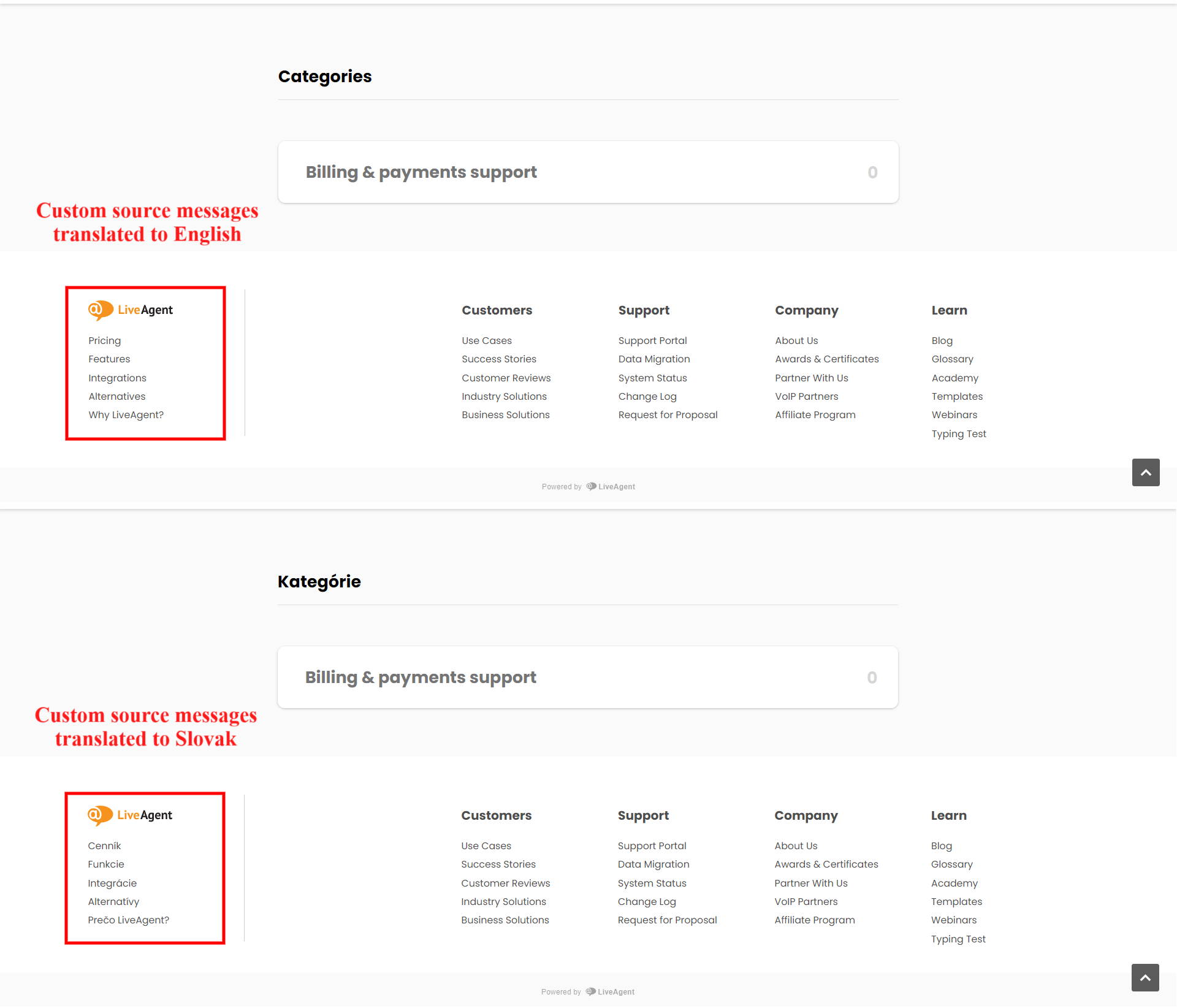 ##で囲まれたソースメッセージは、カスタマーポータルのカスタムフッターなどの要素で使用することができ、顧客のブラウザの言語設定に合わせて各項目を自動翻訳します。