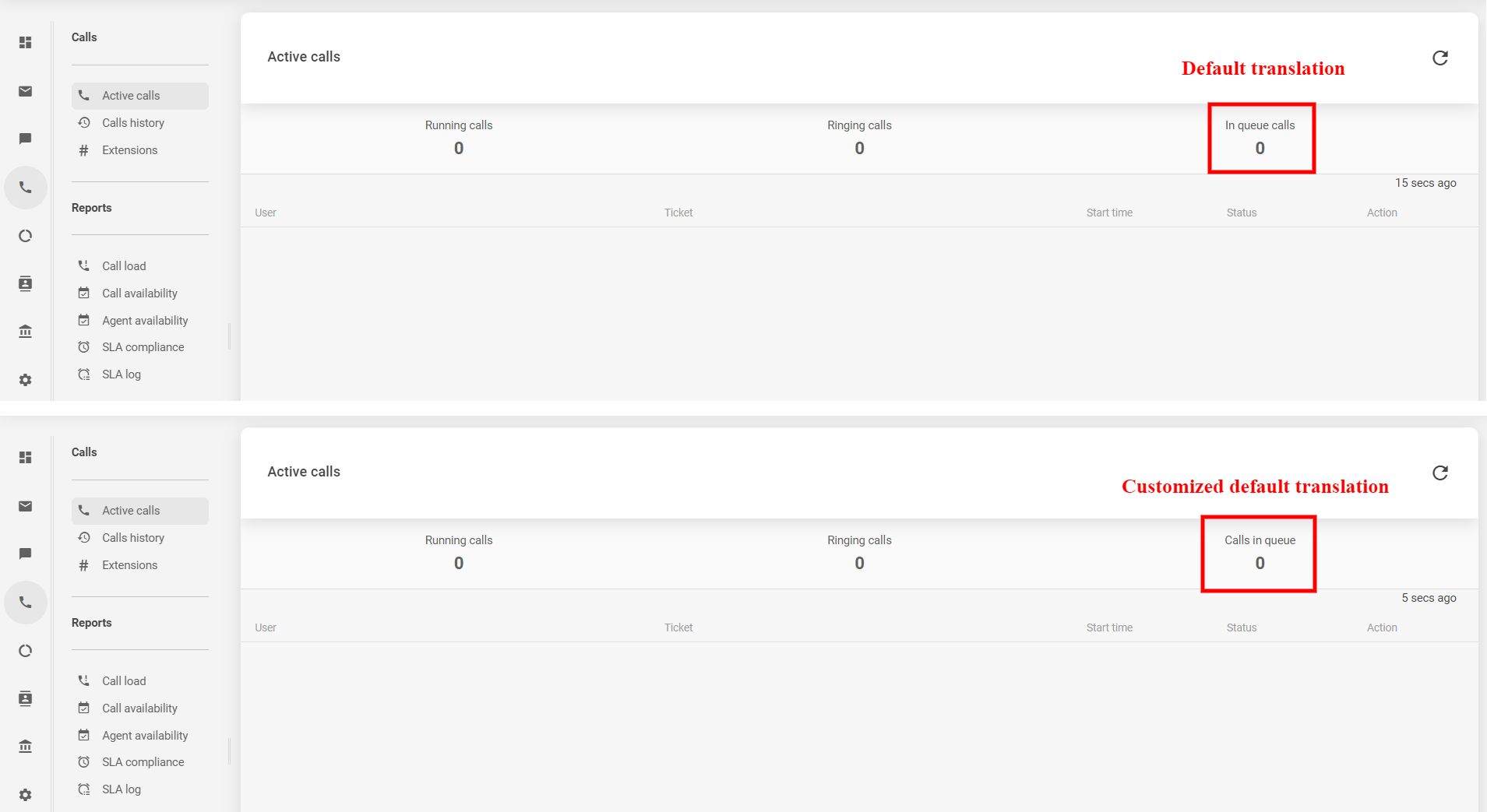 デフォルト翻訳は、LiveAgentパネルで使用される事前設定済みの言語翻訳で、セクション名やボタン名などが含まれます。デフォルト翻訳はLiveAgentアカウント向けにカスタマイズできますが、追加や削除はできません。カスタマイズされたデフォルト翻訳はカスタム翻訳とみなされます。カスタマイズされたデフォルト翻訳を削除すると、翻訳はデフォルトの状態に戻ります。