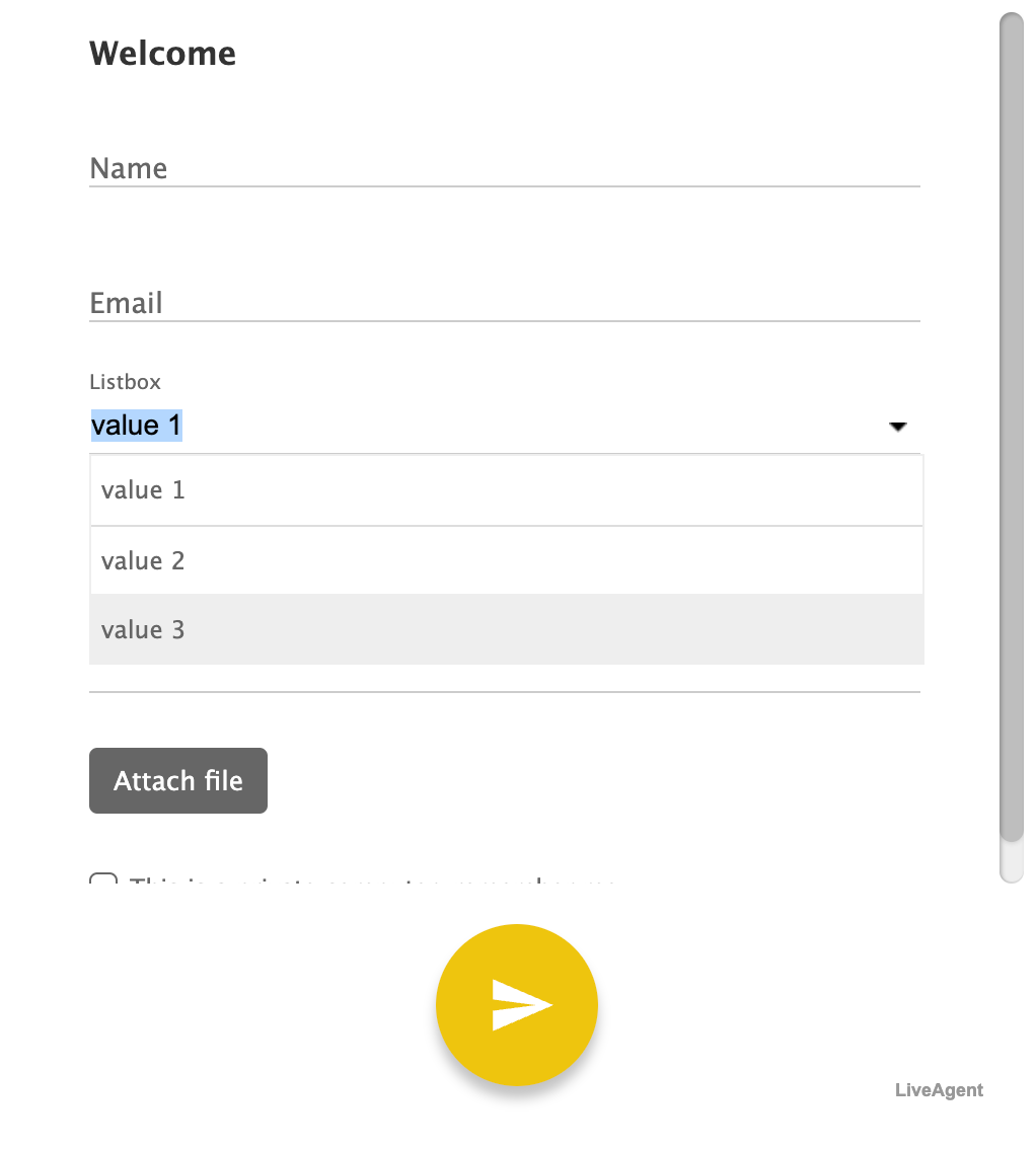 お問い合わせフォームにデフォルト値のないリストボックスフィールドが必要な場合があります。これにより、顧客はデフォルト値を使用する代わりに、リストボックスからいずれかのオプションを選択する必要があります。これは、製品のバージョンや特定の製品の色など、顧客から特定の情報を収集する必要がある場合に便利です。