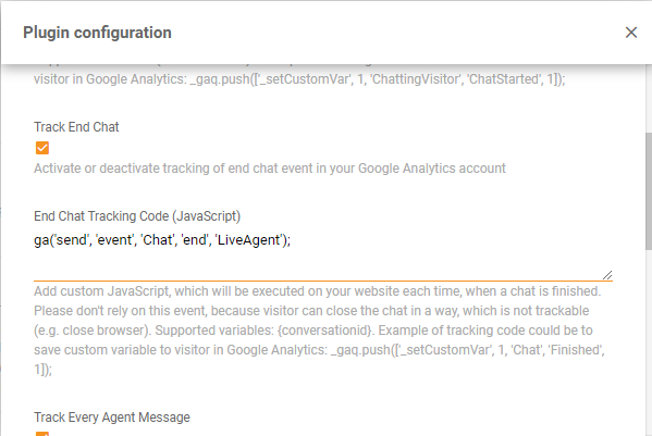 Live Chat Trackingプラグインを使用すると、以下のイベントが発生した際にトラッキング用JavaScriptを実行できます: