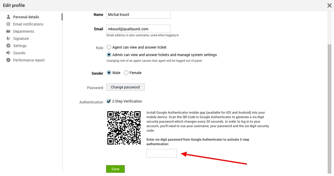 手順3: Google Authenticatorに表示された6桁のパスワードを入力して、2段階認証を有効化します。
