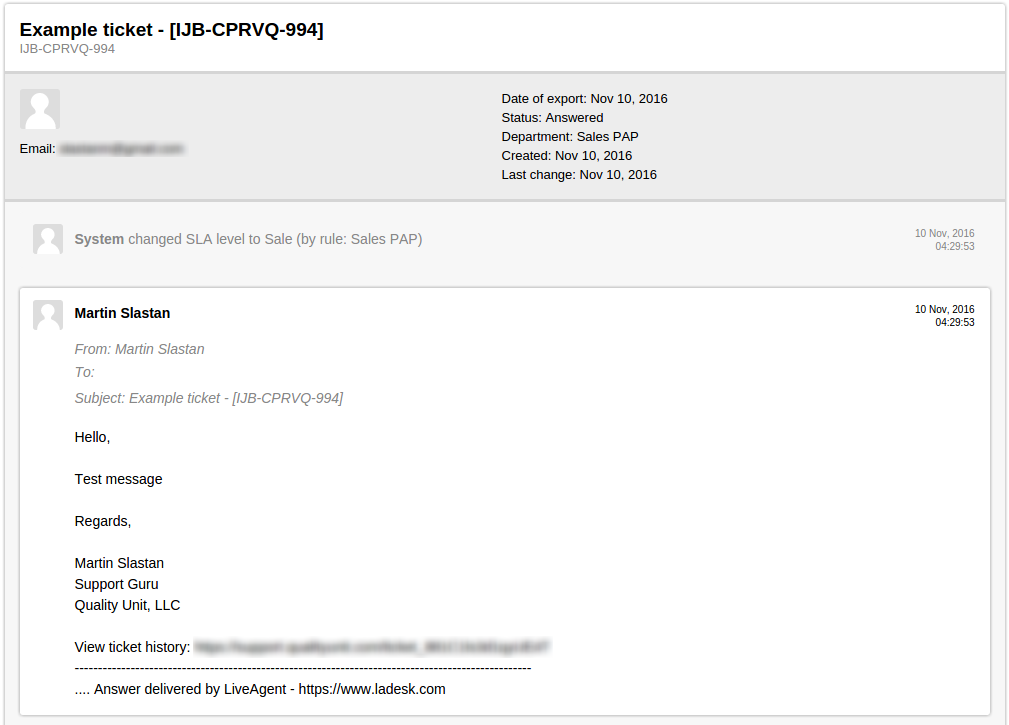 注意:セキュリティ上の理由から、チケット内のインライン画像はエクスポートされたHTMLには含まれません。