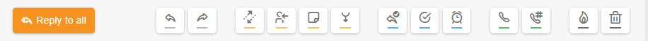 このパネルには、チケットに対して実行できるすべてのアクションのボタンが表示されます。例えば、チケットへの返信、転送、エージェントへの割り当て、対応の延期、ノートの追加、解決などの操作が行えます。