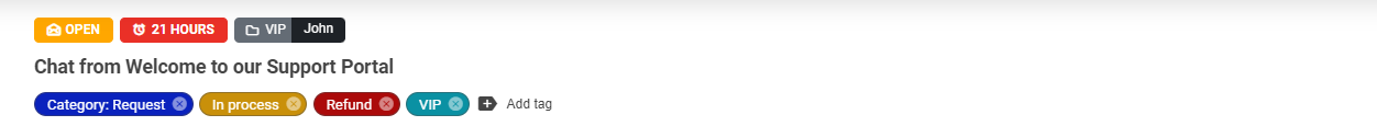 チケットヘッダーのこのセクションには、チケットに追加されたすべてのタグが表示されます。タグの追加や、検索したタグが見つからない場合の新規タグ作成も、このセクションから行えます。