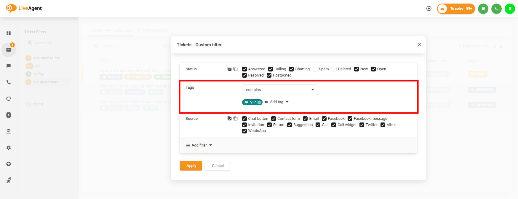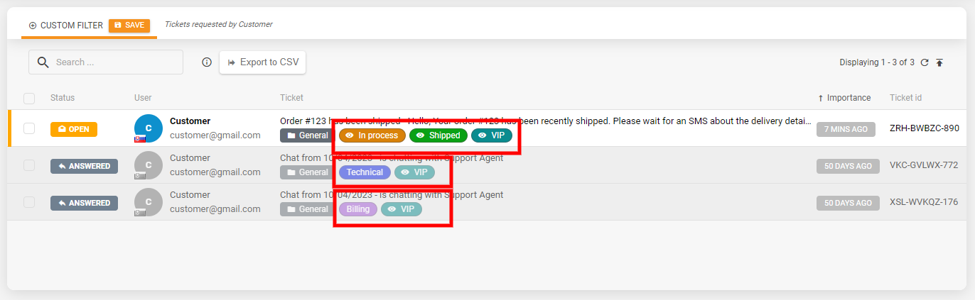 タグは、チケット一覧でチケットを検索・表示するチケットフィルターの条件として使用できます。
