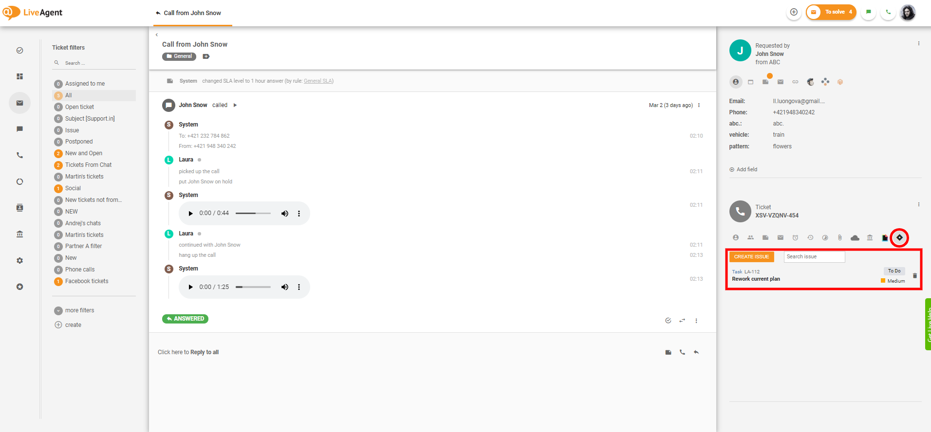 Jiraは、Atlassianが提供するソフトウェアで、122カ国75,000社以上の企業が課題管理やプロジェクト管理に活用しています。JiraとLiveAgentの連携プラグインを利用することで、エージェントはLiveAgent内の特定チケットから直接Jiraのタスクを表示・検索・作成できるようになります。