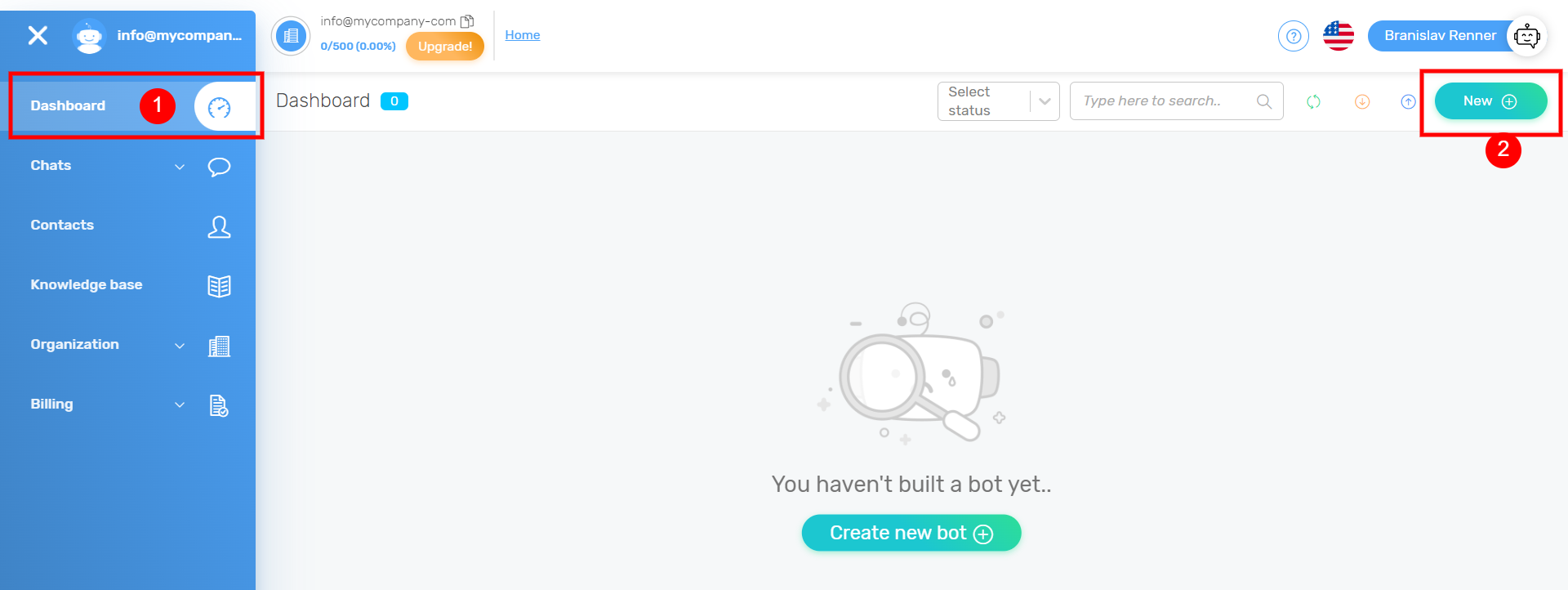 Quriobotアカウントにログインし、ダッシュボードに移動して新しいボットを作成します。