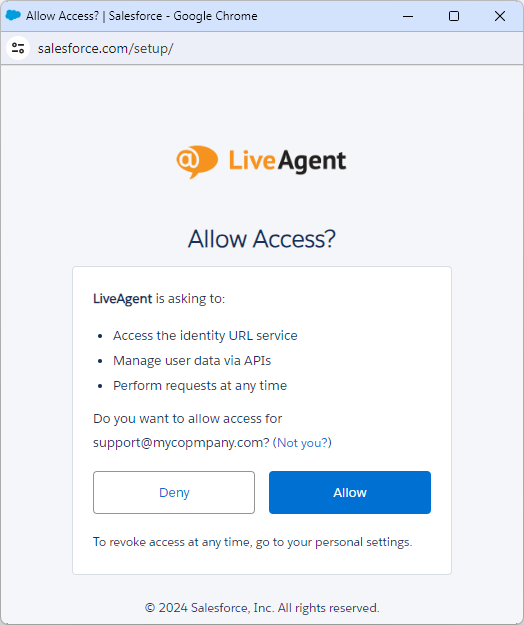 Salesforce認証のポップアップウィンドウで「Allow」(許可)ボタンをクリックします。
