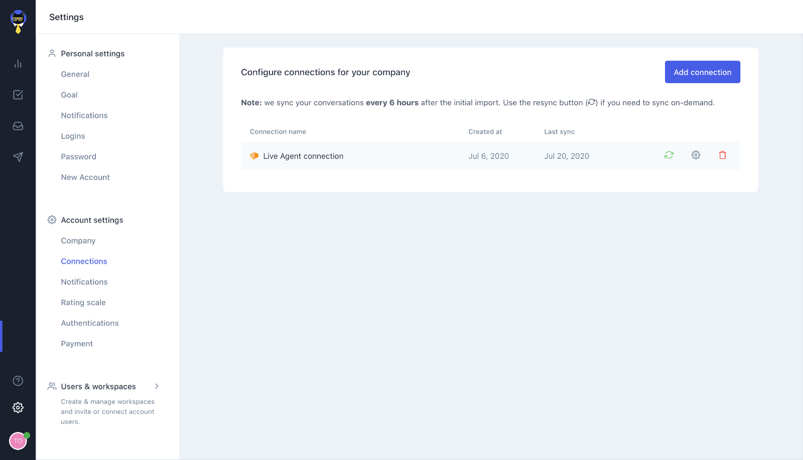 - まず、Klausアカウントにログインし、Settings(設定)> Account Settings(アカウント設定)> Connections(接続)に移動します。