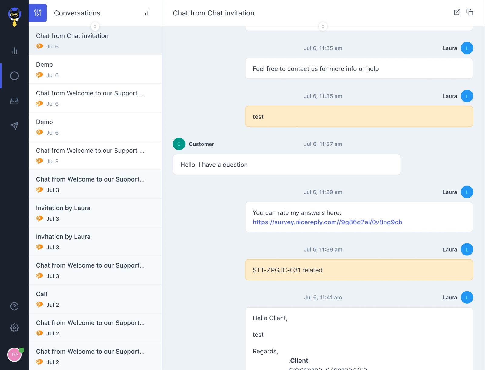 - これでチケットがKlausにインポートされます。conversations(会話)ウィンドウで確認できます。