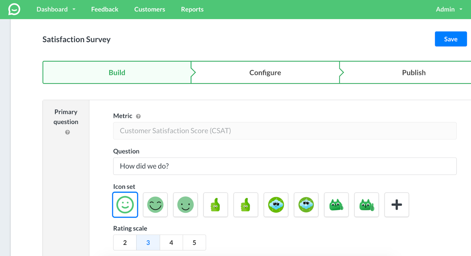 どちらを選んでも、連携の手順は同じです。Simplesatでは、調査を多様な方法でカスタマイズし、質問や評価オプションを選択することができます。
