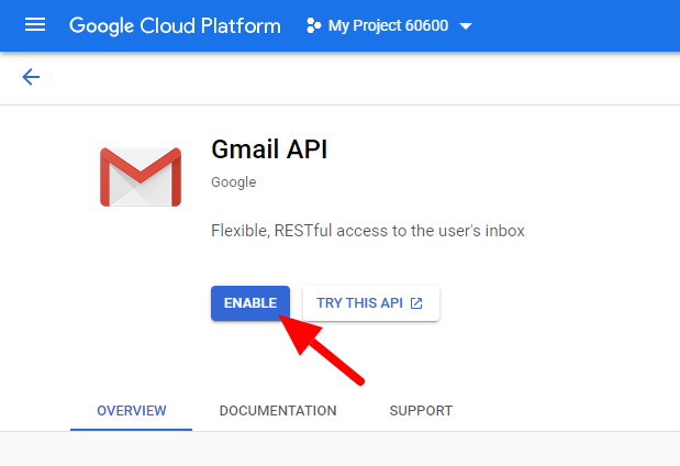 - ENABLEボタンをクリックして、プロジェクトでこのAPIを有効にします。