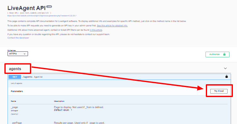 LiveAgent APIの完全なドキュメントは、お使いのLiveAgentアカウント内で確認できます: *https://**YOURDOMAIN.*ladesk.com/docs/api/v3/#/
