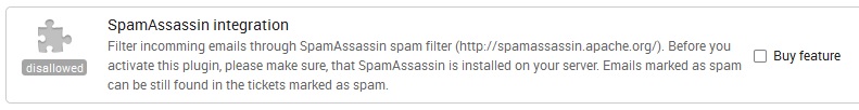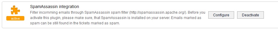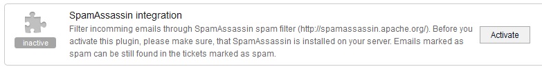 このプラグインを有効にする前に、SpamAssassinがサーバーにインストールされていることを確認してください。 スパムとしてマークされたメールは、スパムとしてマークされたチケットの中に引き続き表示されます。
